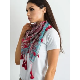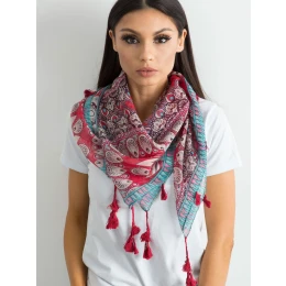Červená šála s etnickým potiskem.