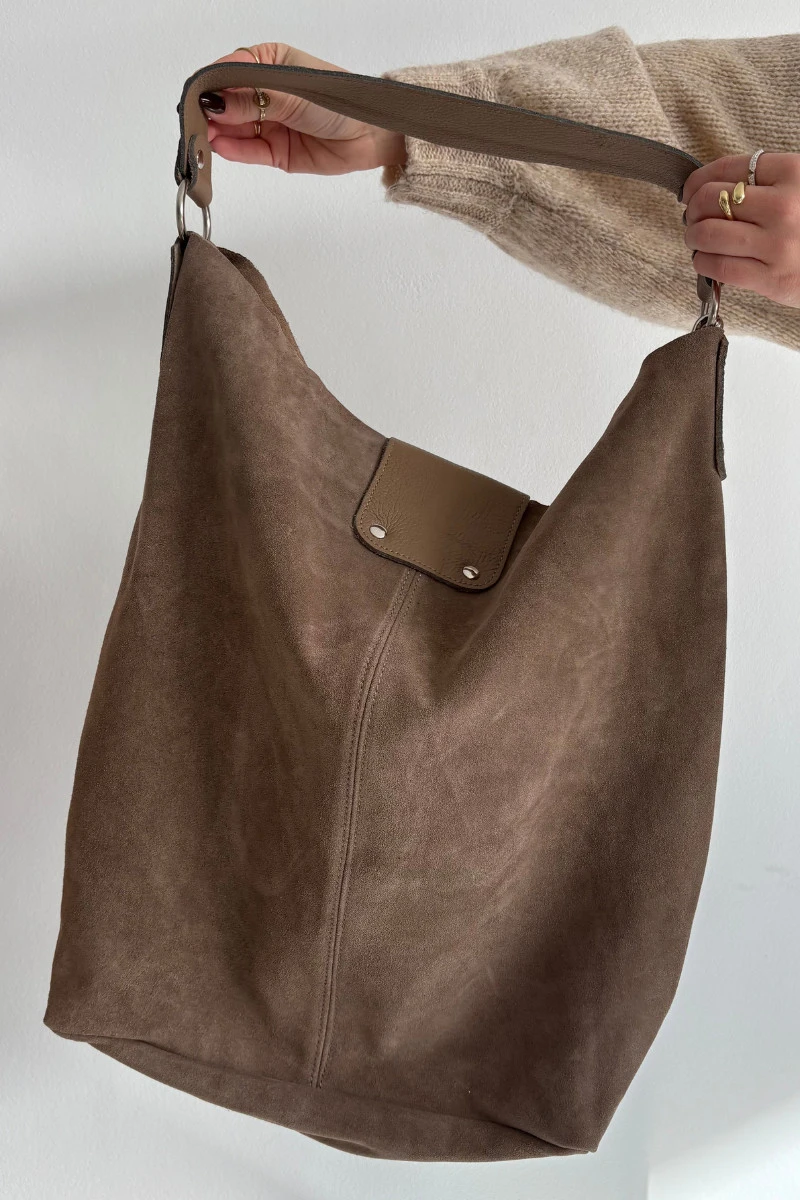 Velká kožená semišová kabelka tmavě béžová Hanelle