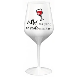 VELKÁ SKLENICE NA MALÉ PROBLÉMY - bílá nerozbitná sklenice na víno 470 ml