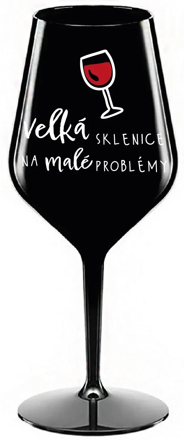 VELKÁ SKLENICE NA MALÉ PROBLÉMY - černá nerozbitná sklenice na víno 470 ml