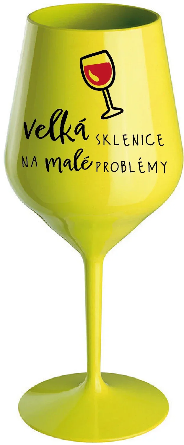 VELKÁ SKLENICE NA MALÉ PROBLÉMY - žlutá nerozbitná sklenice na víno 470 ml