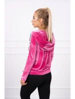 Prezentujemy Państwu modną bluzę z kapturem. Bluza wykonana z weluru. Bluza bez kieszeni z zapięciem na suwak. Na ramionach znajdują się ozdobne taśmy z napisem. U dołu bluza wykończona gumą. Bluza wykonana jest z wysokiej jakości materiału. Rozmiar jest uniwersalny i będzie odpowiedni dla Pań noszących rozmiar S, M lub L.