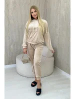 Rozměry soupravy ve velikosti S měřené na plocho: šířka v podpaží - 55 cm, délka halenky - 56 cm, délka rukávů - 63 cm, šířka v pase - 34 cm, délka kalhot - 93 cm