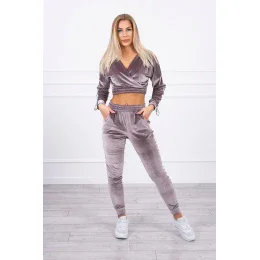 Představujeme vám sadu mikiny a kalhot. Sada z veluru. Mikina s výstřihem. Ozdobná stuha na ramenou s nápisem. Ve spodní části mikiny je všitá guma. Kalhoty s kapsami a páskou na nohavicích. Velmi módní a stylová sada. Sada je vyrobena z vysoce kvalitního materiálu. Velikost je univerzální a vyhovuje dámám velikosti S, M nebo L.
