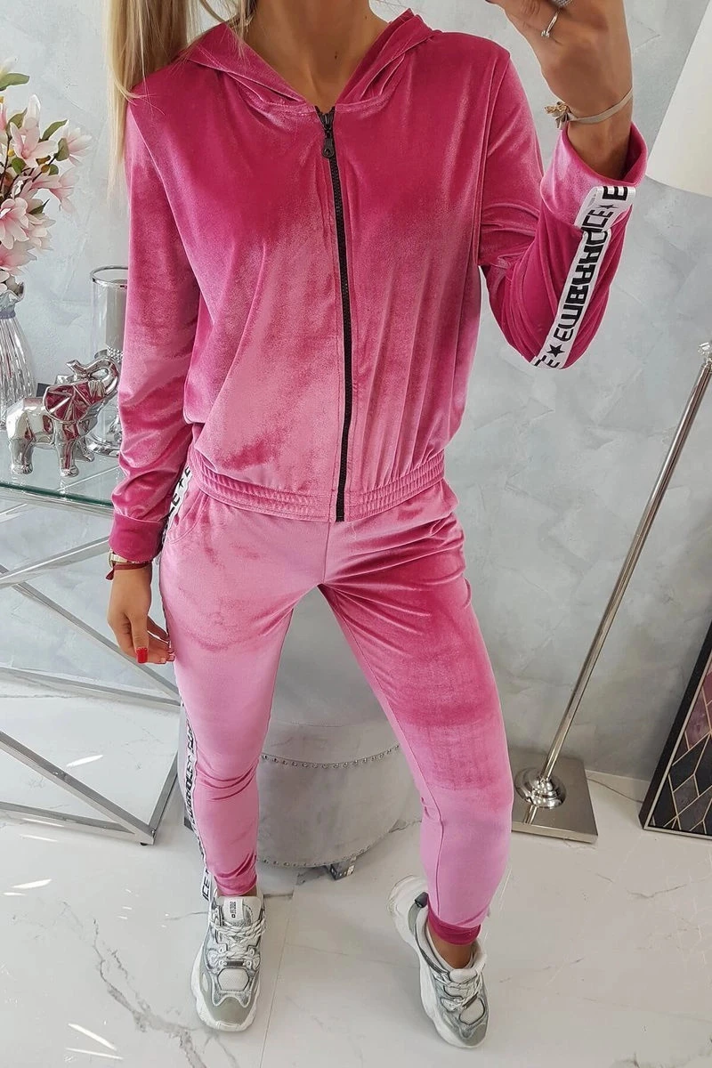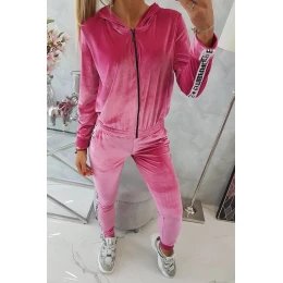 Velurová souprava s ozdobnými stuhami fuchsiová