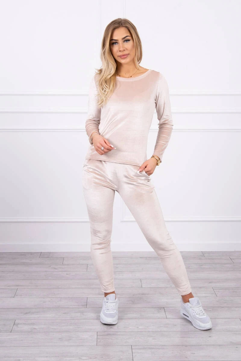 Prezentujemy Państwu komplet bluzy i spodni. Komplet wykonany z weluru. Bluza i spodnie posiadają z tyłu marszczenie. Bardzo modny i stylowy komplet. Komplet wykonany jest z wysokiej jakości materiału. Rozmiar jest uniwersalny i będzie odpowiedni dla Pań w rozmiarze S, M lub L.
