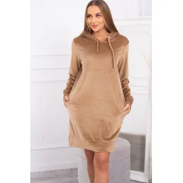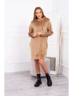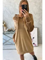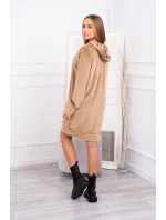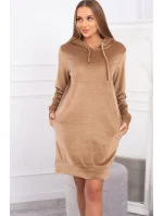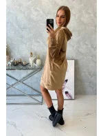 Béžovo-tyrkysové velurové šaty s kapucí a se vzorem listů (8250)