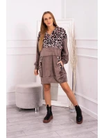 Velurové šaty s maskovacím motivem mocca