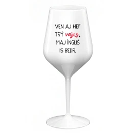 VEN AJ HEF TRÝ VAJNS, MAJ ÍNGLIŠ IS BEDR. - bílá nerozbitná sklenice na víno 470 ml