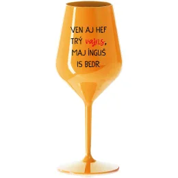 VEN AJ HEF TRÝ VAJNS, MAJ ÍNGLIŠ IS BEDR. - oranžová nerozbitná sklenice na víno 470 ml