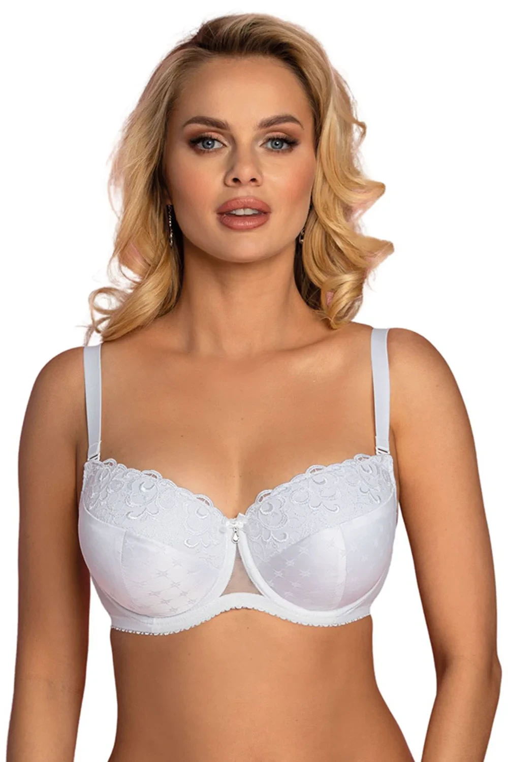 Podprsenka značky Vena, model VB-442, s drátky, které podporují a tvarují prsa, s nastavitelnými a odnímatelnými ramínky, se zapínáním na háčky na zádech, dvěma řadami svislých háčků a čtyřmi úrovněmi vodorovných háčků. 75% polyamid, 15% elastan, 5% polyester, 5% bavlna, ženská.