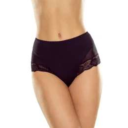 Korigující dámské kalhotky s vysokým sedem a vsadkami z elastické síťoviny a krajky na bocích.