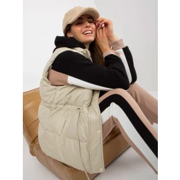 Světle béžová péřová vesta z ekokůže bez kapuce a .