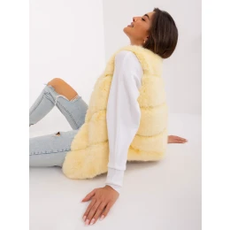 Světle žlutá kožešinová vesta s kapsami .