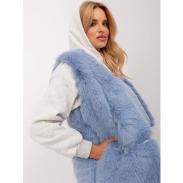 Modrá kožešinová vesta se zapínáním.