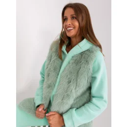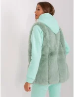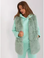 Pistáciová kožešinová vesta s kapsami .