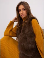 Tmavě hnědá kožešinová vesta s kapsami .