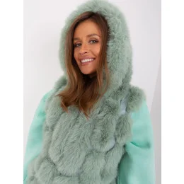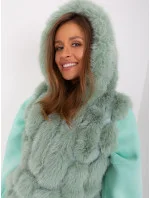Pistáciová kožešinová vesta na zip s kapucí.
