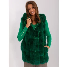 Tmavě zelená vesta s kožešinovou podšívkou .