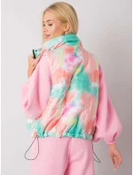 Zelená a oranžová vesta bez kapuce.