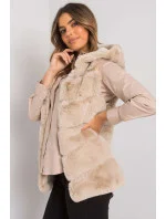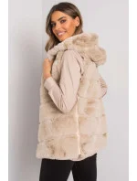 Dámská béžová vesta s kapucí. Vesta se zapíná na háčky, je celá podšitá.