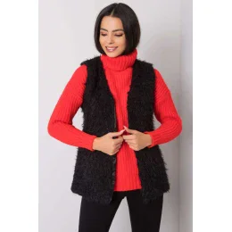Černá kožešinová vesta se zapínáním na háčky a oka a podšívkou.