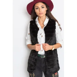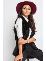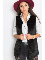 Černá kožešinová vesta se zapínáním na háčky a oka a podšívkou.