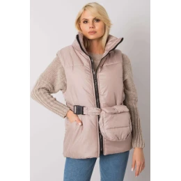 Béžová péřová vesta s podšívkou a zipem. Vesta s kapsami, včetně opasku.