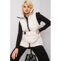 Péřová vesta v barvě ecru, podšitá, se zipem. Vesta s kapsami, včetně opasku.