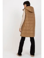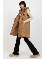 Prošívaná péřová vesta prodlouženého střihu se zapínáním na zip. Vesta s odnímatelnou kapucí, kapsy na zip na přední straně. Plně podšité.