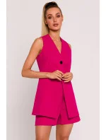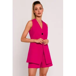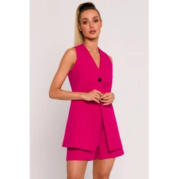 Představujeme jedinečnou látkovou vestu, jejíž návrh a výroba probíhaly s plným nasazením v Polsku. Tato vesta je dokonalým příkladem spojení elegance, funkčnosti a polského krejčovského řemesla. Vesta se zapíná na jediný knoflík a působí mimořádně stylově a minimalisticky. Mírně projmutý střih v pase jí dodává na eleganci a zároveň umožňuje volnost pohybu. Vesta bez límce a s hlubokým výstřihem do V vypadá moderně a univerzálně, hodí se k nejrůznějším stylům. Praktickým prvkem jsou kapsy v bočním švu, které vestě dodávají utilitární nádech a zároveň zůstávají decentně skryté. Vesta byla plně podšitá, což zvyšuje pohodlí při nošení a díky tomu látka dokonale přiléhá k tělu. Design a výroba v Polsku jsou zárukou vysoké kvality zpracování a důrazu na detail. Tato vesta není pouhým doplňkem šatníku, je výrazem polské krejčovské tradice a designérských dovedností. Nošením této vesty nejen podtrhnete svůj styl, ale také podpoříte místní řemeslnou zručnost a kreativitu.