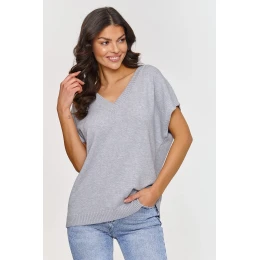 Tento svetříkový top je stylový a pohodlný kus oblečení, který určitě přidá svěžest každému outfitu. Vyrobený z měkkého materiálu poskytuje pohodlí po celý den. Výstřih ve tvaru V je jedním z nejvíce elegantních a univerzálních střihů, který jemně prodlužuje krk a dodává lehkost celému outfitu. Model má volný, oversized střih, který skvěle padne ke všem typům postav, poskytuje pohodlí a svobodu pohybu. Krátký rukáv ve formě širokých rukávů přidává módní, ležérní akcent, který je ideální na teplejší dny a také se skvěle hodí pro vrstvení v chladnějších dnech. Vyrobený z směsi vláken, včetně PBT, má tento top výjimečné vlastnosti. PBT je vlákno, které si dlouho udržuje tvar a strukturu, což zajišťuje, že neztrácí na estetice a je trvanlivější. Díky pružnosti PBT se model dokonale přizpůsobí postavě, poskytuje pohodlí a komfort po celý den. Svetříkový top nejen vypadá módně, ale je také funkční a pohodlný. Můžete ho kombinovat s různými kusy oblečení, od ležérních džínů po elegantní sukně, vytvářející outfit na různé příležitosti.