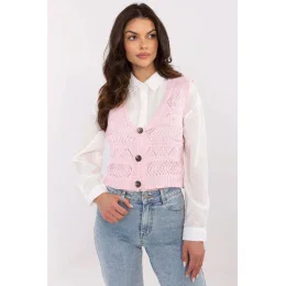 Průsvitný dámský svetr v casual stylu je módním a lehkým doplňkem každodenního oblékání. Vyrobený z směsi bavlny a polyakrylu, je příjemný na dotek, prodyšný a pohodlný k nošení. Bezrukávový model s krátkou délkou a výstřihem do V se skvěle hodí jak k halence, tak k jednoduchému tričku. Průsvitný vzor dodává celku jemnost a lehkost, zatímco klasické zapínání na knoflíky zdůrazňuje uvolněný, každodenní charakter svetru. Jedná se o univerzální nabídku, která se skvěle hodí po celý rok jako doplněk mnoha outfitům.
