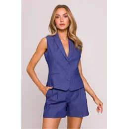 Elegantní, přizpůsobený vesta vyrobená z vysoce kvalitní bavlněné látky s matným povrchem. Její hluboký výstřih ve tvaru písmene V a šálový límec dodávají celku rafinovaný charakter, skvěle ladící jak s košilí, tak i nošený samostatně. Model se zapíná třemi knoflíky potaženými látkou, co přidává eleganci a stylistickou jednotu. Na přední straně jsou umístěny falešné kapsy, které jemně zdůrazňují klasický tvar bez narušení siluety. Lehce talírovaný střih krásně zdůrazňuje postavu a délka po pas dovnitř dělá vestu skvělým doplňkem jak k běžnému, tak i formálnímu outfitu. Navrženo a ušito v Polsku s důrazem na detaily a kvalitu provedení.
