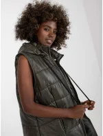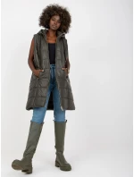 Khaki dlouhá péřová vesta s prošíváním OCH BELLA .