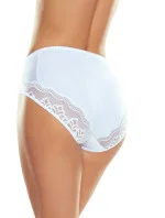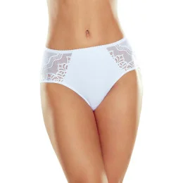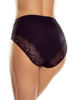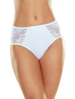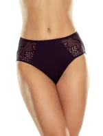 Dámské kalhotky s vysokým sedem, jemnou korekcí bříška, síťovinou a krajkovými vsadkami na bocích.