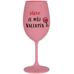 VÍNO JE MŮJ VALENTÝN - růžová sklenice na víno 350 ml