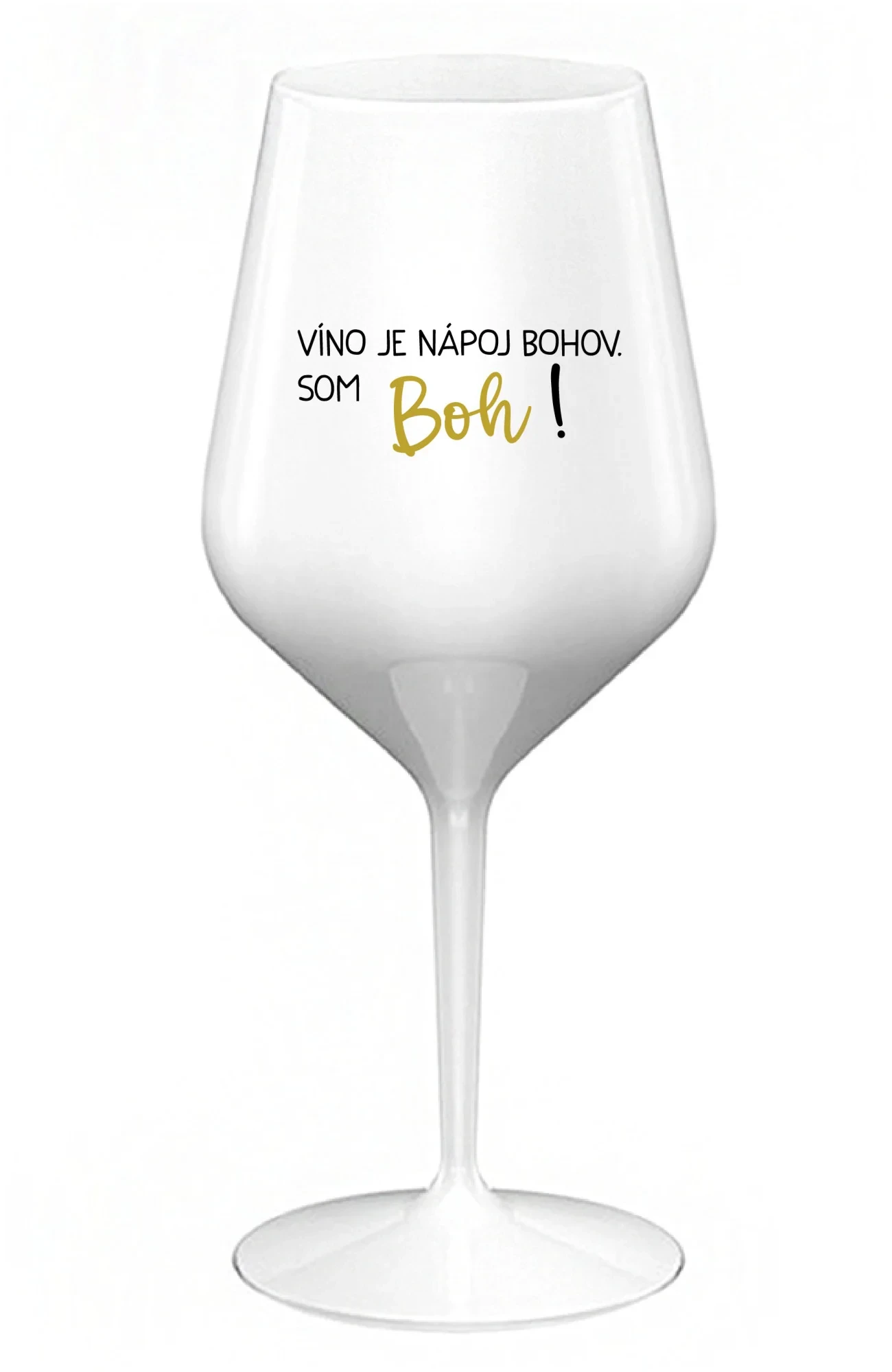 VÍNO JE NÁPOJ BOHOV. SOM BOH! - biely nerozbitný pohár na víno 470 ml