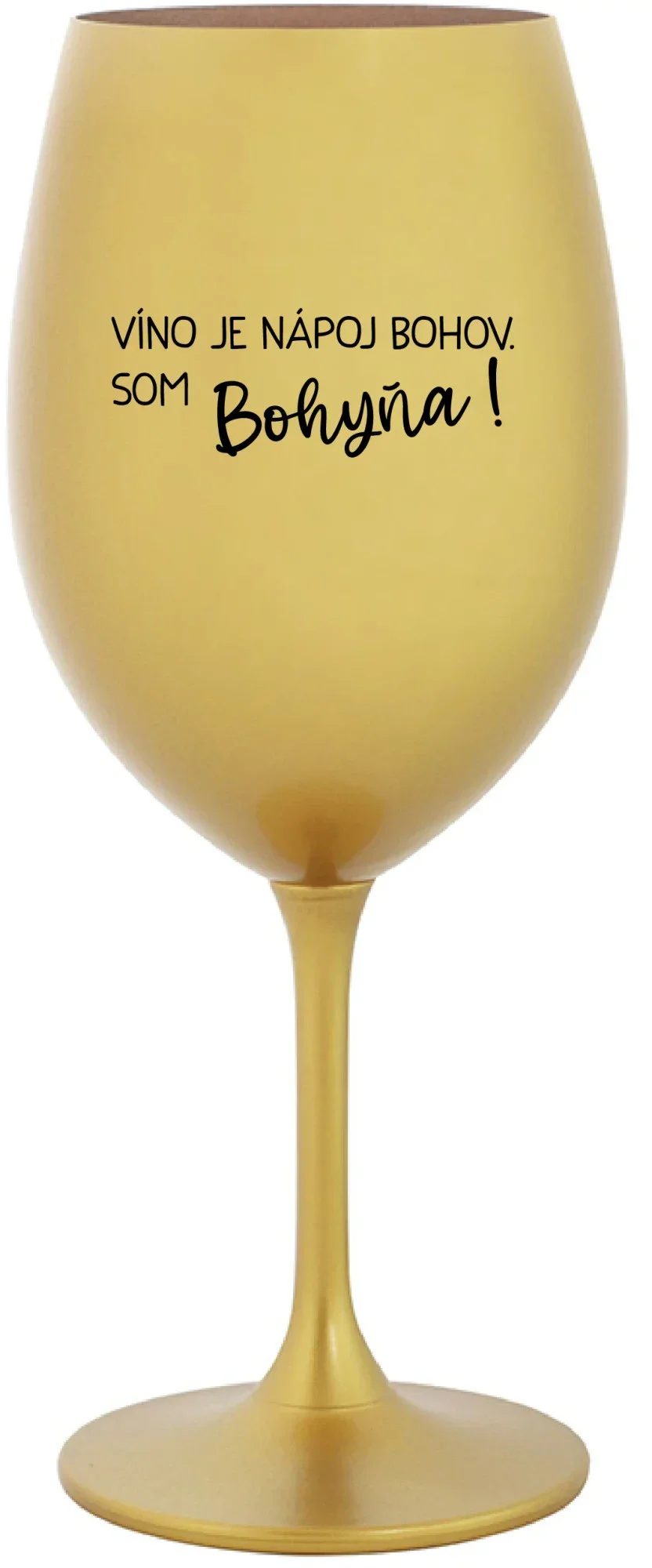 VÍNO JE NÁPOJ BOHOV. SOM BOHYŇA! - zlatý pohár na víno 350 ml