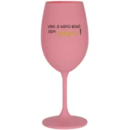 VÍNO JE NÁPOJ BOHŮ. JSEM BOHYNĚ! - růžová sklenice na víno 350 ml