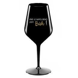 VÍNO JE NÁPOJ BOHŮ. JSEM BŮH! - černá nerozbitná sklenice na víno 470 ml