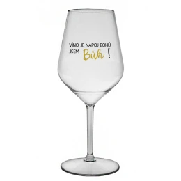 VÍNO JE NÁPOJ BOHŮ. JSEM BŮH! - čirá nerozbitná sklenice na víno 470 ml