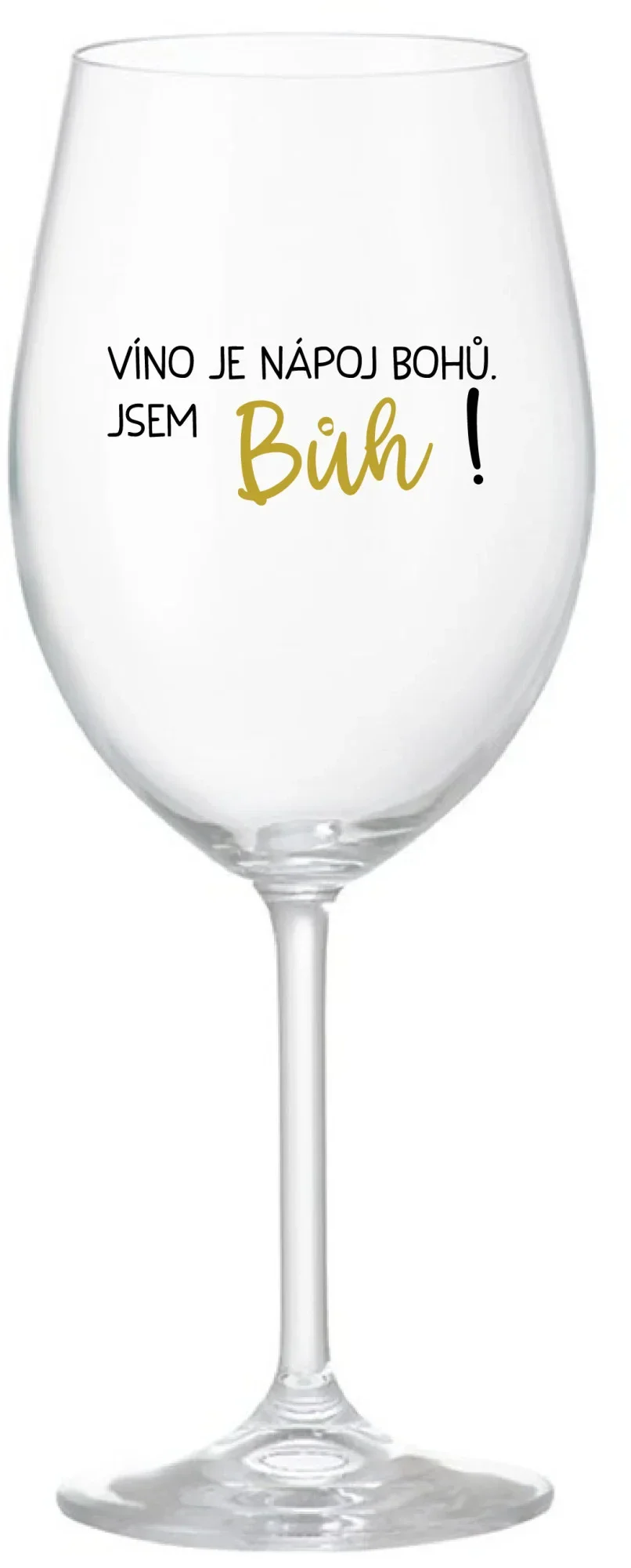 VÍNO JE NÁPOJ BOHŮ. JSEM BŮH! - čirá sklenice na víno 350 ml