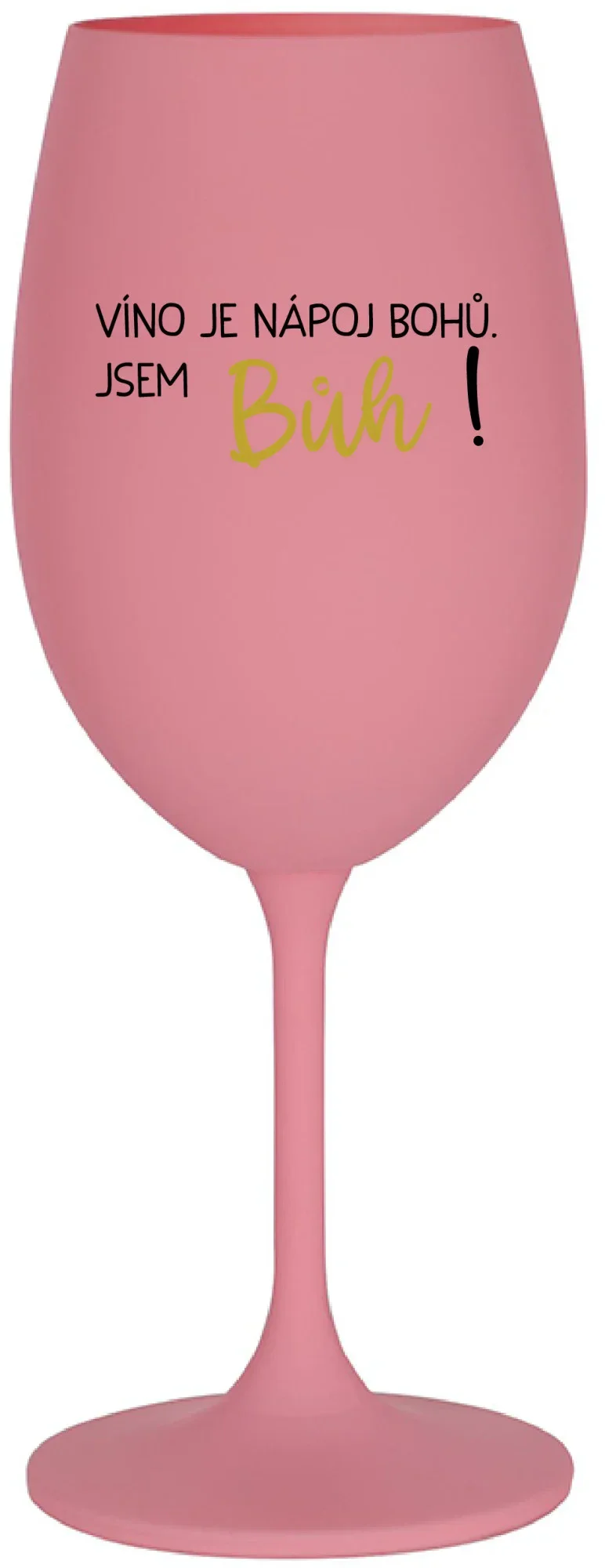 VÍNO JE NÁPOJ BOHŮ. JSEM BŮH! - růžová sklenice na víno 350 ml