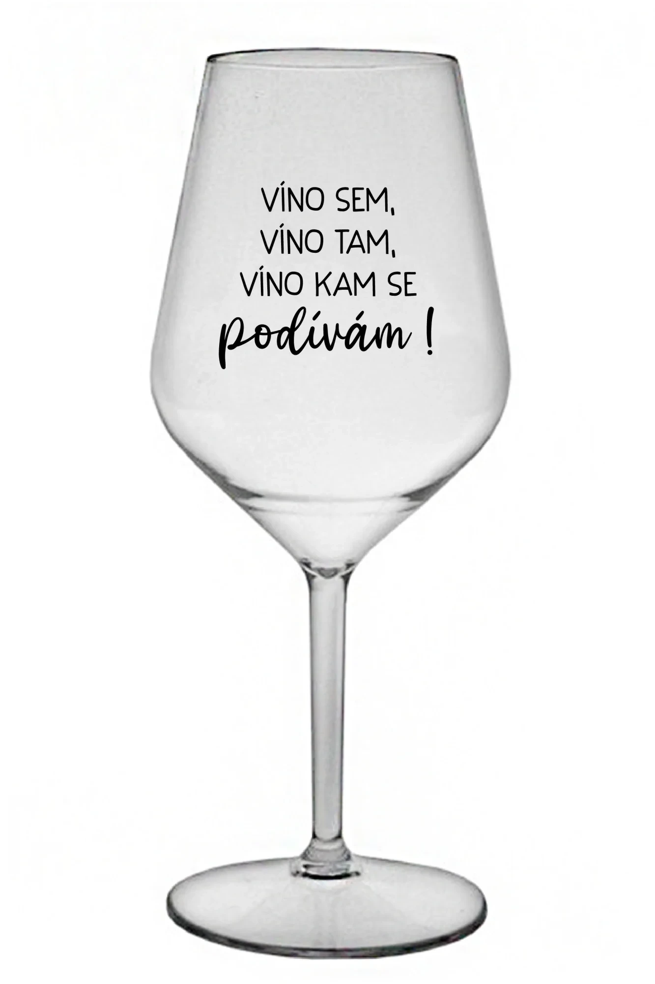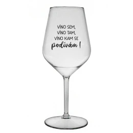 VÍNO SEM, VÍNO TAM, VÍNO KAM SE PODÍVÁM! - čirá nerozbitná sklenice na víno 470 ml