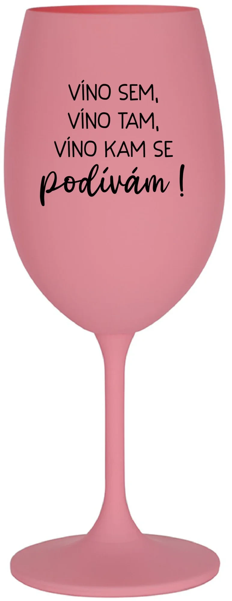 VÍNO SEM, VÍNO TAM, VÍNO KAM SE PODÍVÁM! - růžová sklenice na víno 350 ml