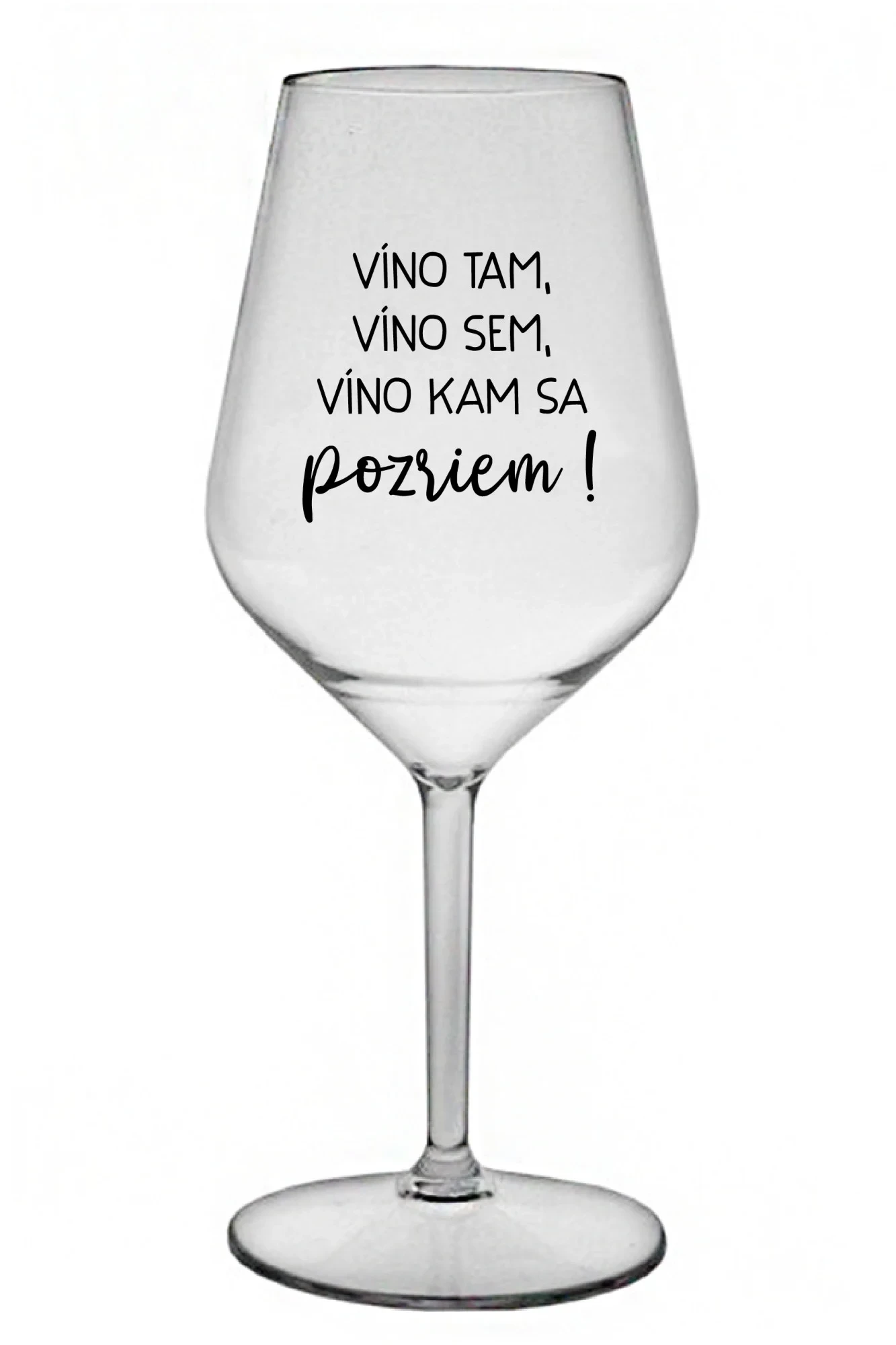 VÍNO TAM, VÍNO SEM, VÍNO KAM SA POZRIEM! - priehľadný nerozbitný pohár na víno 470 ml
