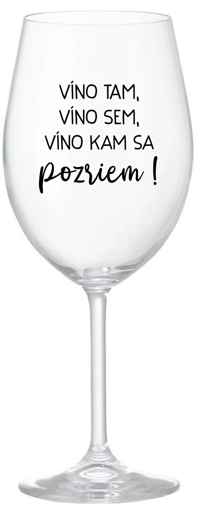 VÍNO TAM, VÍNO SEM, VÍNO KAM SA POZRIEM! - priehľadný pohár na víno 350 ml