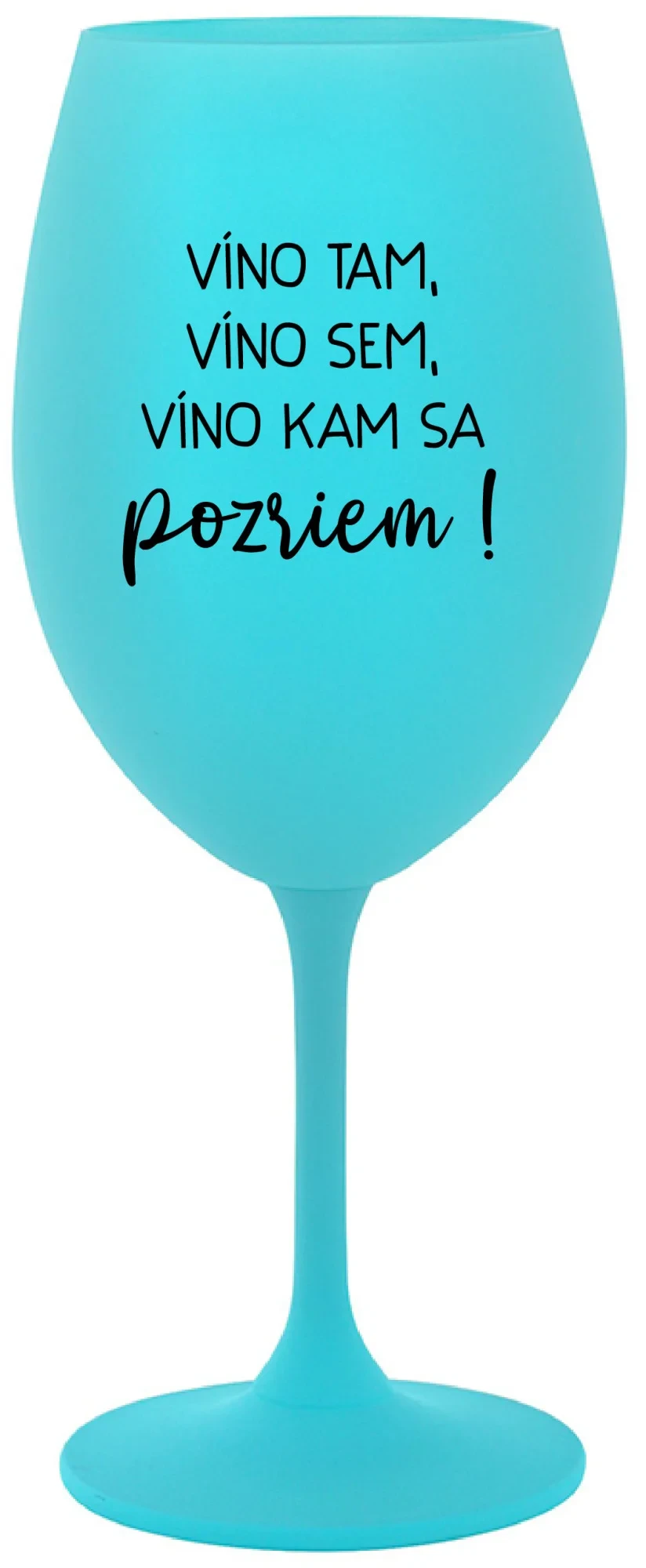 VÍNO TAM, VÍNO SEM, VÍNO KAM SA POZRIEM! - tyrkysový pohár na víno 350 ml