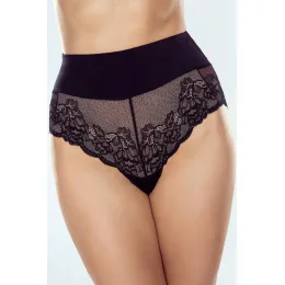 Přední díl kalhotek je vyrobený z krajkové vrstvy podšité tělovou síťovinou, která zakrývá průsvitnost krajky. Zadní díl modelu je plnější a pěkně nadnáší hýždě.